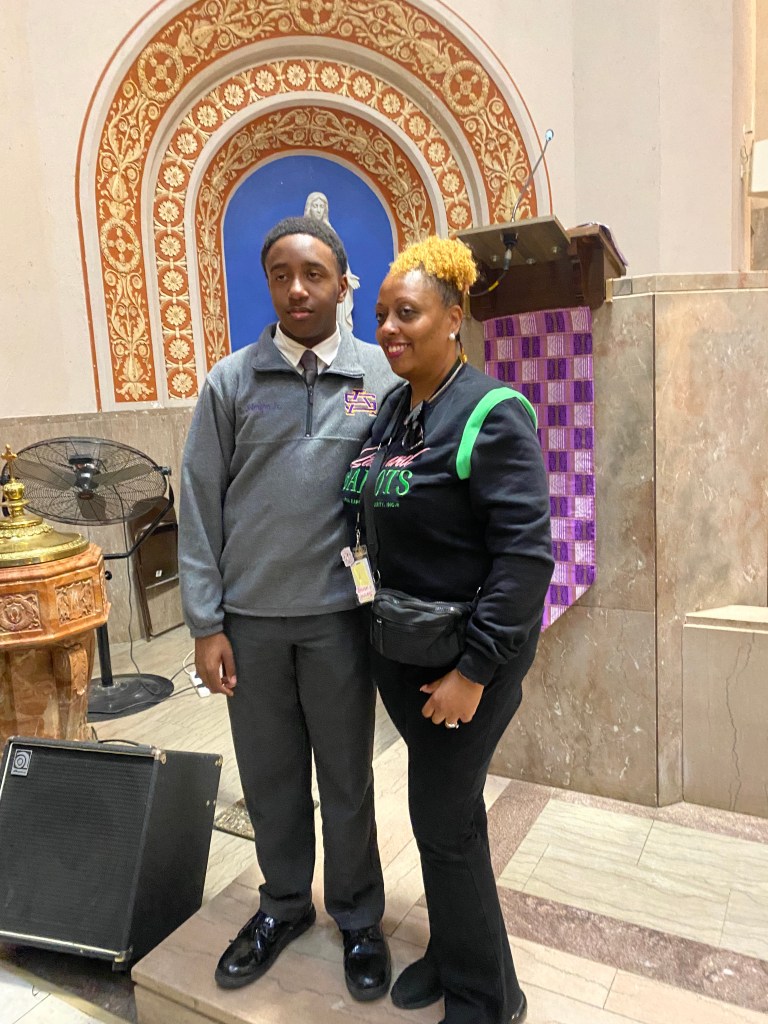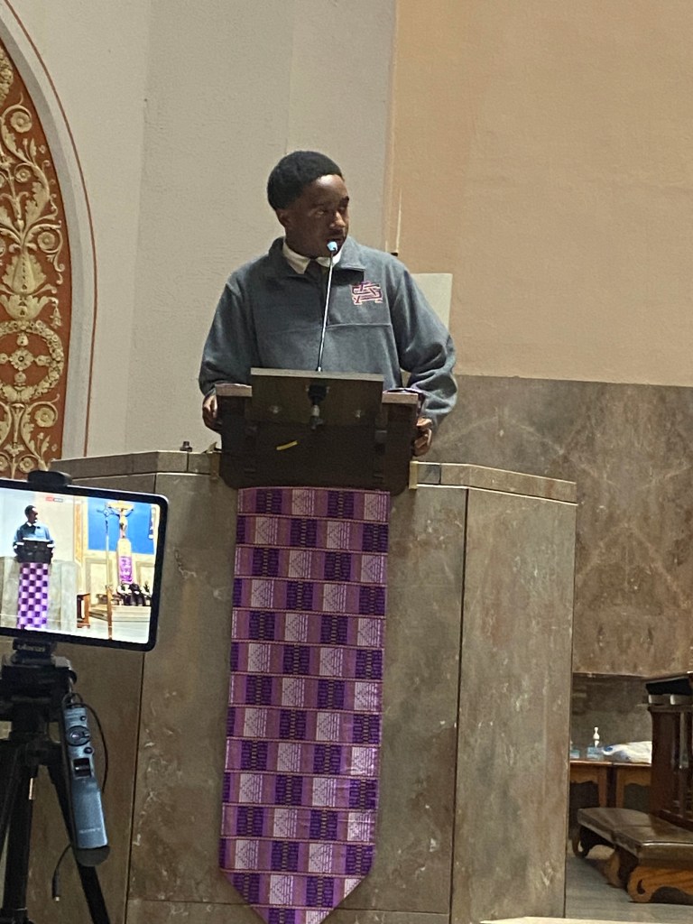 Our talented Youth Members–Sean Johnson and Jaiden Bagneris. They both attend St. Augustine High School in New Orleans, Louisiana and are both involved in the school ministry. In the pictures below, they are participating at a Lenten Revival