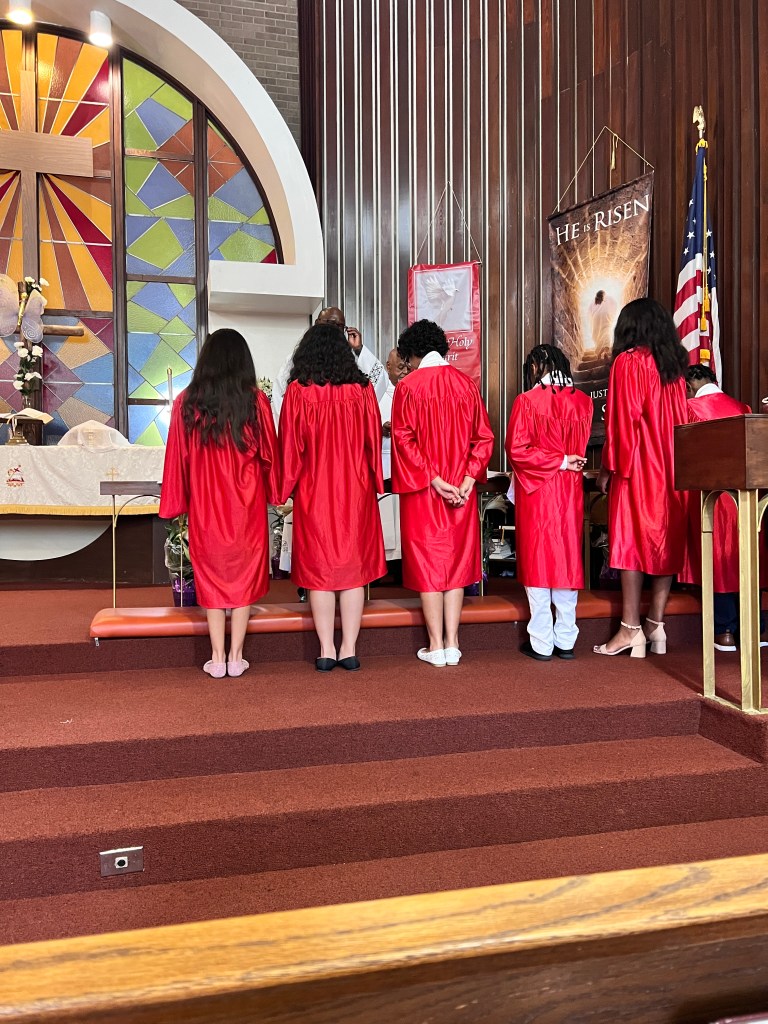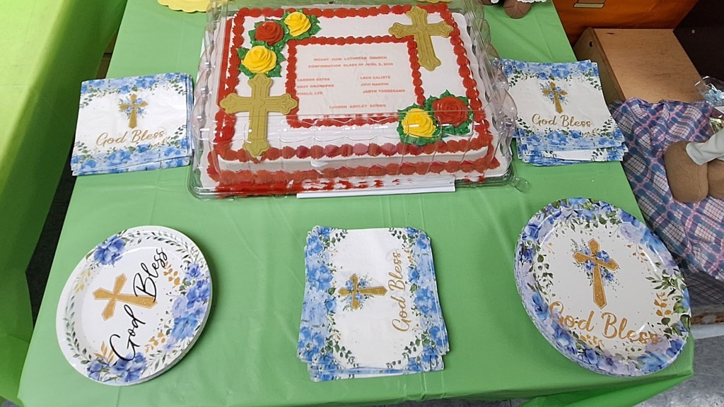 Christ is Risen! He is risen, indeed. Allelua! Mount Zion Lutheran Church celebrated the Resurrection of our Lord in a big way with the Confirmation of our six amazing Youth. It was a great occasion as they reaffirmed and confirmed their faith and baptismal grace in the Lord. You should have seen their faces as they received Holy Communion for the first time. Great memories always… We also had an Adult Confirmation, Lauren Brown and we welcomed her into Mount Zion Lutheran membership. Needless, to say it was special moment for her as her daughter Lacii got Confirmed on the same day along with her. We capped off the Resurrection Sunday with Easter Breakfast (big breakfast). We fellowshipped together and enjoyed each other’s company. Below are pictures to show some of the highlights of the day.